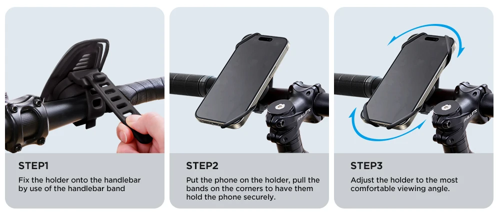 Step 1: Fix the holder onto the handlebar by use of the handlebar hand